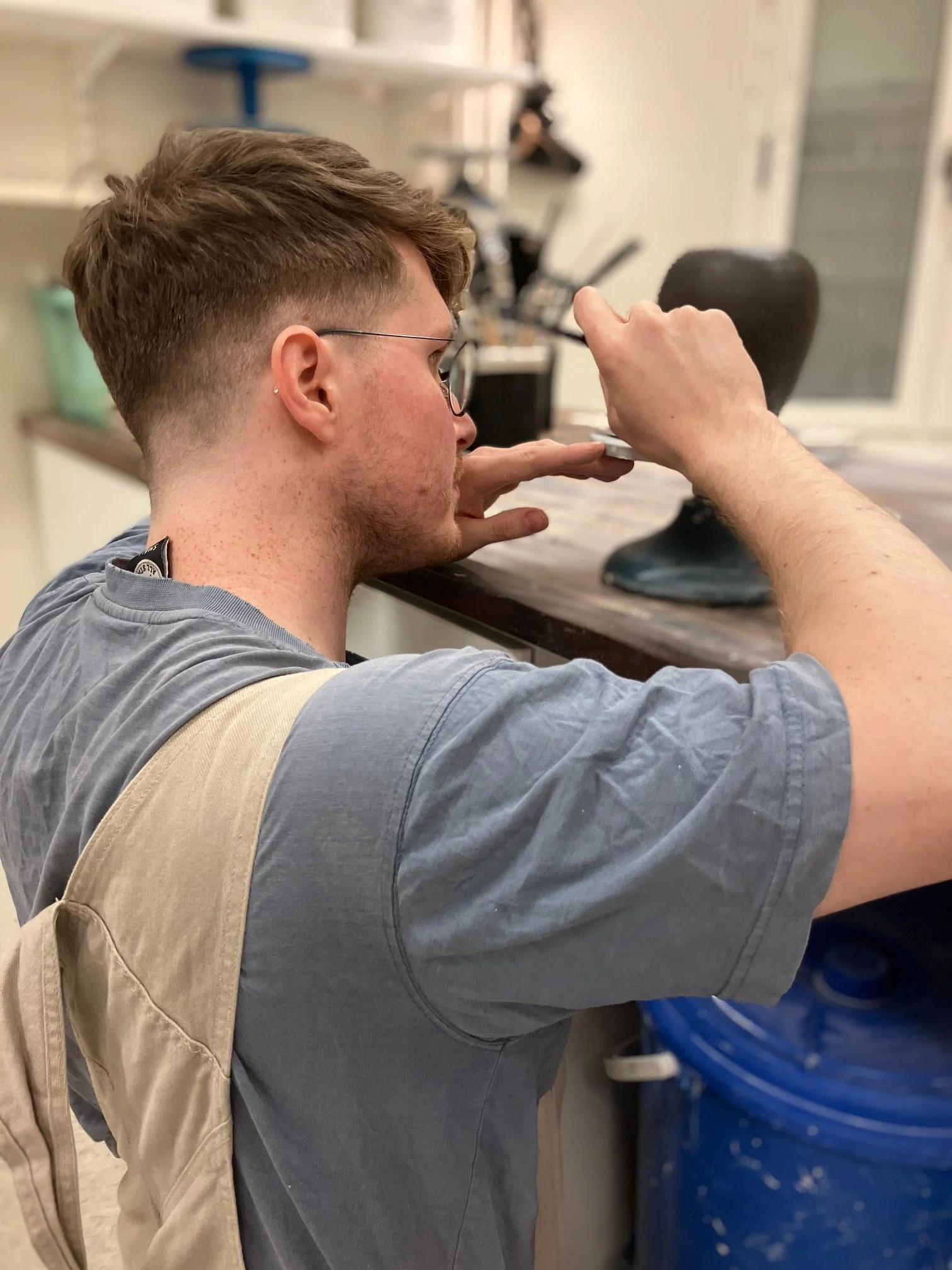 Dag 2: Vi beskickar (färdigställer) alla alster dvs putsning av bottnar, gör pipar, handtag, målar, dekorerar etc.
